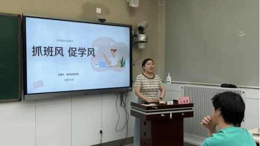 班会上,王晓杰老师从理论高度深入阐释班风建设与学风培育的内在联系,系统分析当前班级建设中存在的突出问题,并就如何构建优良班风、培育严谨学风提出具体要求。王晓杰老师强调,优良的班风学风是保证人才培养质量的重要基础,每位同学都应当以主人翁姿态积极参与班级学风建设。