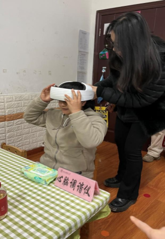 学院特殊教育、应用心理学专业硕士研究生代表深入幼儿班级了解学前融合教育开展情况,为幼儿教师进行心理测评。心理学专业研究生演示心理调适系统、心脑调谐仪、便携心理自助系统和VR设备等心理学仪器,并组织36名幼儿园教职工开展趣味心理测验活动和体验心理仪器。