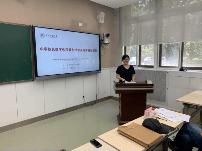 博士生赵婷婷、韦国秀、郭晓君、李莉依序对课题《小学数学跨学科主题学习实践研究》、《指向核心素养的高中数学单元教学研究》、《中学校长数字化领导力评价及培养路径研究》、《基于“云连接论”的西部中小学基础教育教师专业发展路径探究》进行了开题报告。