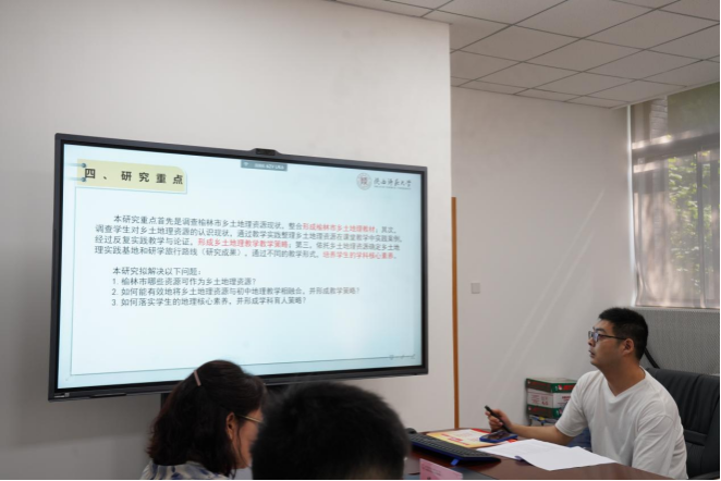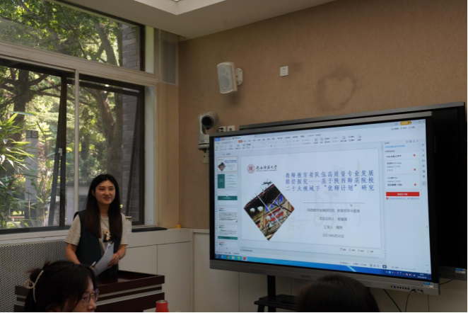 开题报告会上,毛哲茹、张庆和魏玮分别就《双减背景下教师负担的消减路径研究》《素养为本的高中化学教学设计与实施研究》《教师教育者队伍高质量专业发展路径探究基于陕西师范类院校二十大视域下的优师计划研究》等课题,从研究背景和意义、研究现状、研究目标、研究内容、研究方法、创新点以及预期成果等八个方面进行现场汇报。
