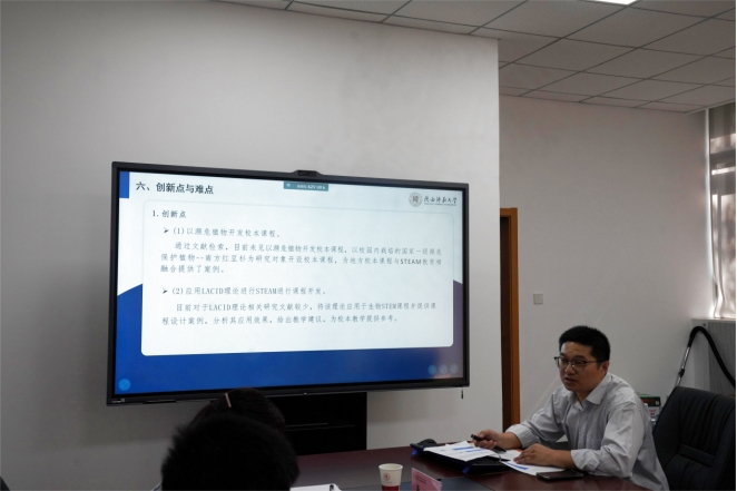 蔡晋华、许志东陈超依次对《核心素养视域下幼儿健康生活素养的培育研究》《基于STEAM理念生物学特色校本课程开发实施》和《乡土地理资源与初中地理课程融合的实践研究》三个项目进行开题汇报全面阐述项目的选题背景、选题目的、研究内容、研究过程与方法以及论文创新点等核心问题。
