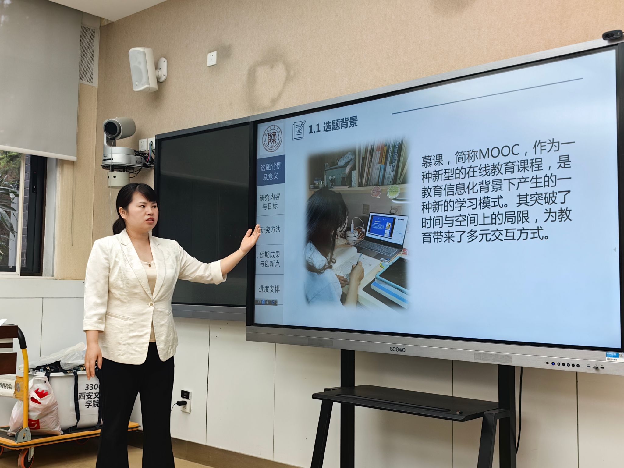 会上,高敏、延艳娜、杨莹、刘晶、姚思佳五位项目负责人依次对《家校社协同视域下中小学校园欺凌综合防治路径研究》《MOOC平台个性化学习倦怠预警与精准干预策略》《“他者”视角下生成式人工智能的伦理挑战与学术赋能研究》《初中英语课堂中社会与情感能力培养的实践研究》《父母心理控制对青少年手机依赖的纵向影响:反刍思维和社交焦虑的链式中介作用》进行开题汇报,从选题背景和意义、国内外研究现状、研究价值、研究思路与设计、预期成果等方面进行全面阐述。