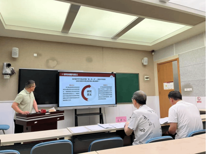会上,刘琪、董勇、朱君和丁瑞四位同学依次对《游戏化教学中学习支架对初中生足球学习效果影响研究》《高中生物理运动与相互作用主题学习轨迹研究》《初中生化学大概念的学习进阶与教学实践研究》《核心素养视域下初中地理教师命题能力现状与提升路径探究》进行开题汇报,内容涵盖选题缘由、研究目的、国内外现状、研究内容、方法、创新点及预期成果。