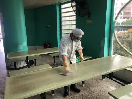 ▲办公室、饭堂消毒