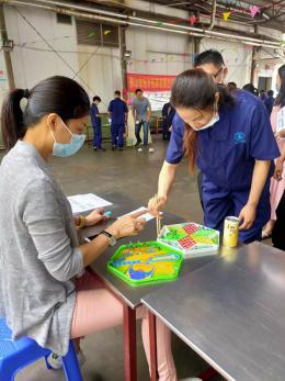 高明厂区的游园活动共分为:中秋猜灯谜、手忙脚乱、欢乐射气球(飞镖掷乐)、袋袋平安(袋鼠跳)、转圈弹瓶盖五个板块。活动还未开始,员工就已经开始摩拳擦掌,跃跃欲试。下面让我们一同来感受他们的欢声笑语。