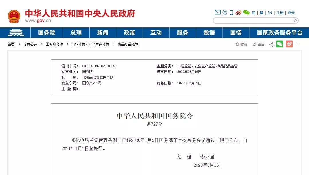 化妆品监督管理条例